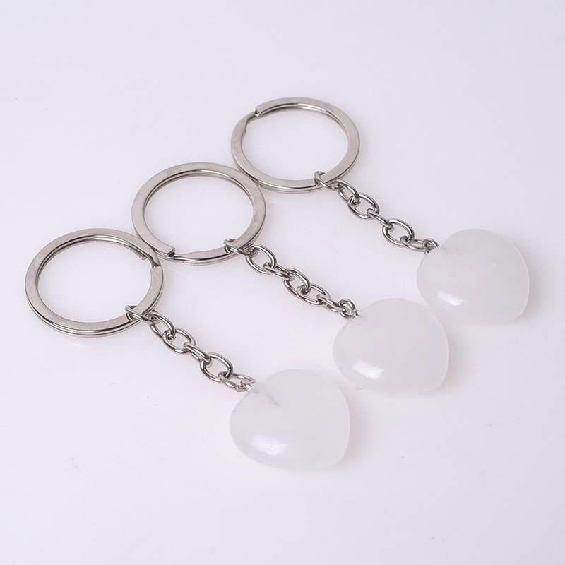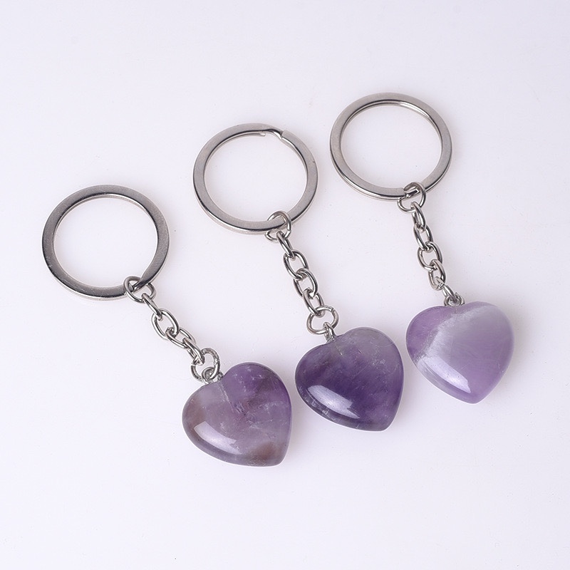 Product Name | Agate Quartz Heart Car Keychain Healing Crystal Stone Amethyst Rose Quartz Carved Heart Sliver Stainless Steel Keychain |