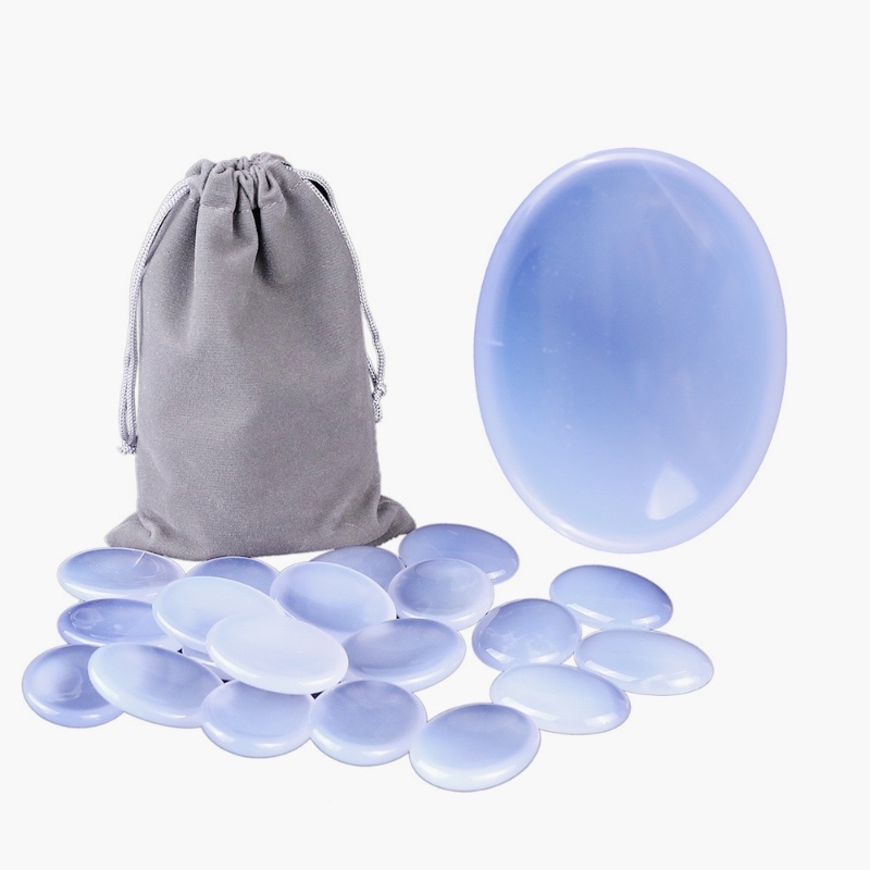 Product Name | Blue Chalcedony Worry Stone Polished Quartz Crystal with Feng Shui Engraved Design Home Decoration Love Theme Gift Mascot Model |