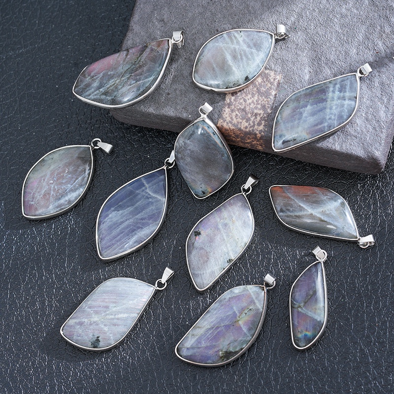 Product Name | Handmade Polished Bohemian Labradorite Pendant Necklace Crystal Diamond Love Silver Bezel Carved Jade Leaf Crystal Jade Jewelry |