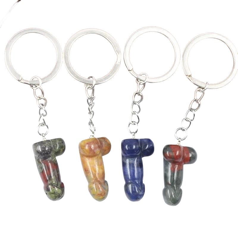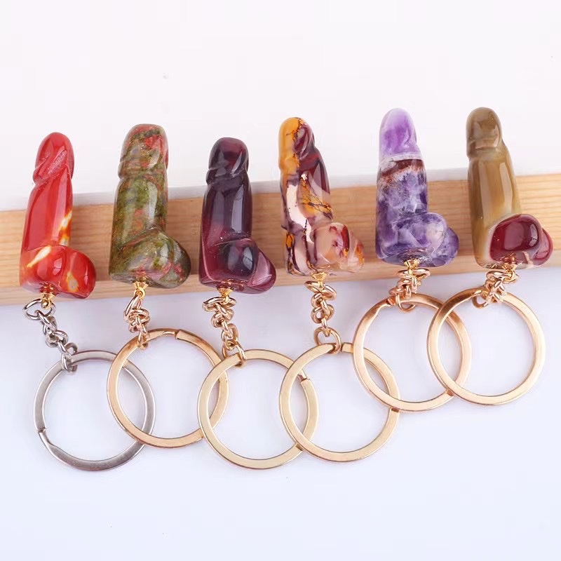 Product Name | Natural Crystal Healing Stone Gemstone Mini Dildo Keychain Stainless Steel Keyring Phallus Pendant Key Ring Charm Keyrings |