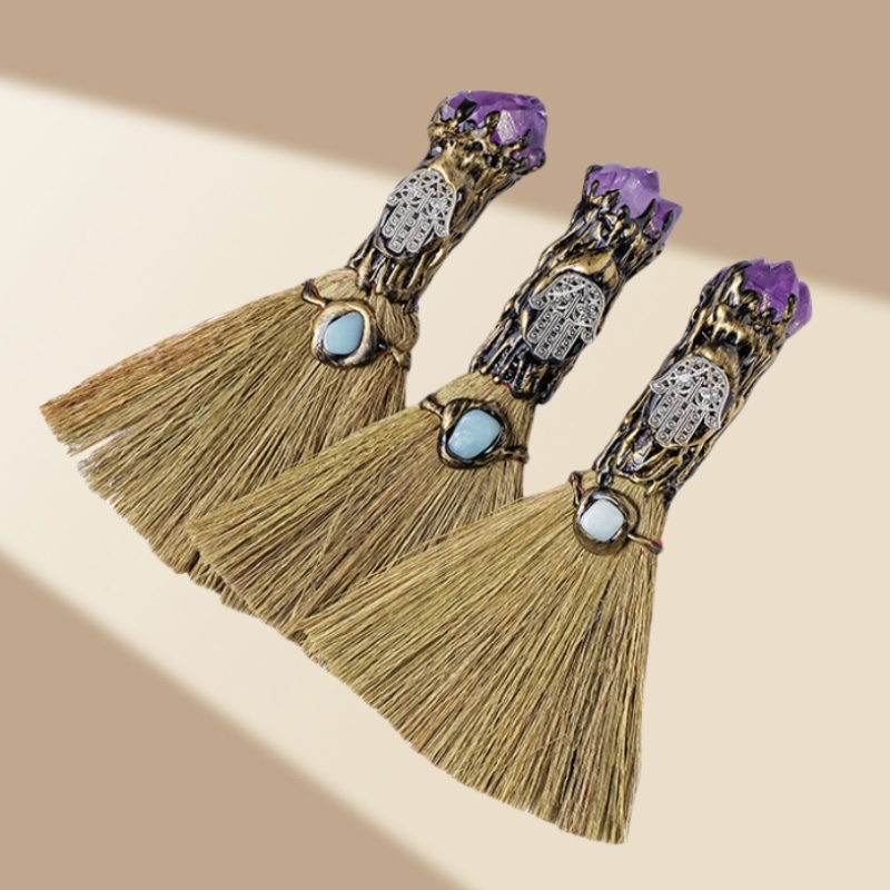 Product Name | Natural Raw Amethyst Tooth Flower Stone Magic Sweeper Broom Crystal Broom Spiritual Meditation Healing Crystal Crafts For Decor |