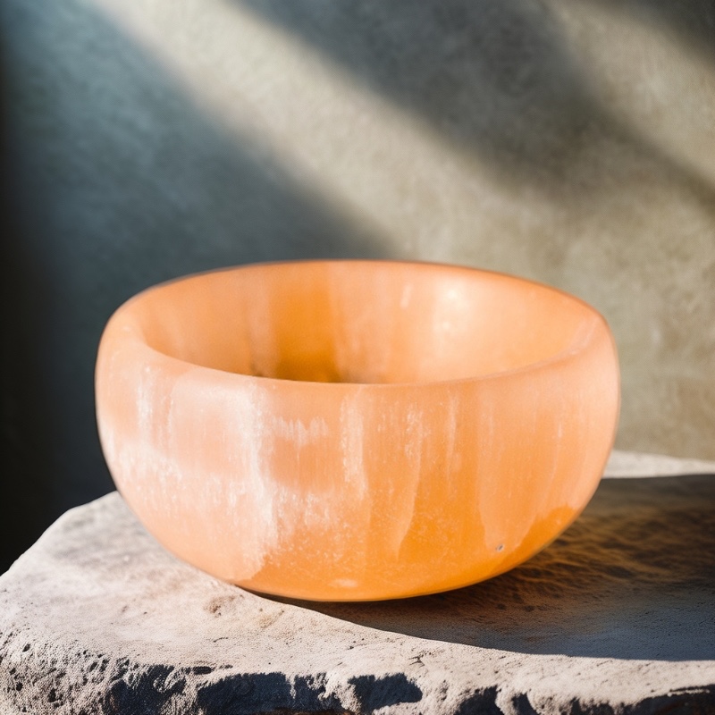 Orange Carved Natural Crystal Selenite Classic Bowl