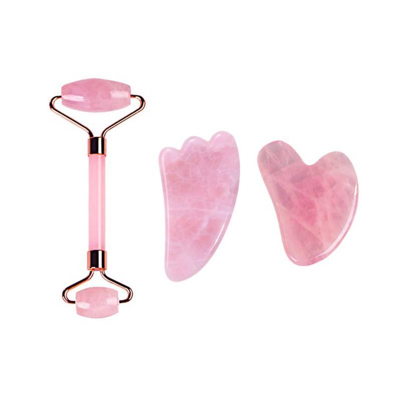 Rose Quartz Jade Roller Guasha Set