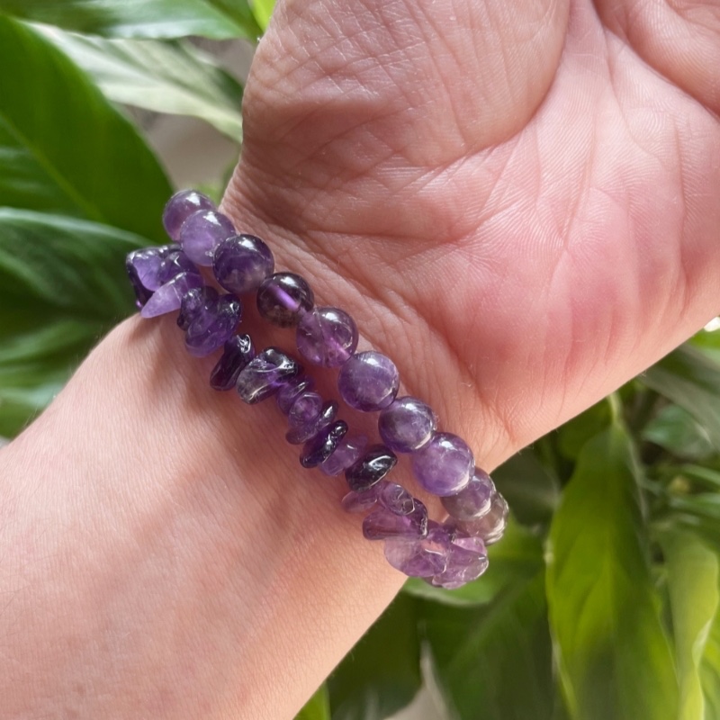 Set of 2 Polished Natural Amethyst Crystal Bracelets
