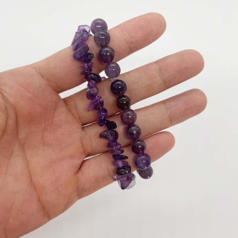 Product Name | Set of 2 Polished Natural Amethyst Crystal Bracelets Purple Gemstone Jewelry with Feng Shui Style for Love-Themed Gifts |