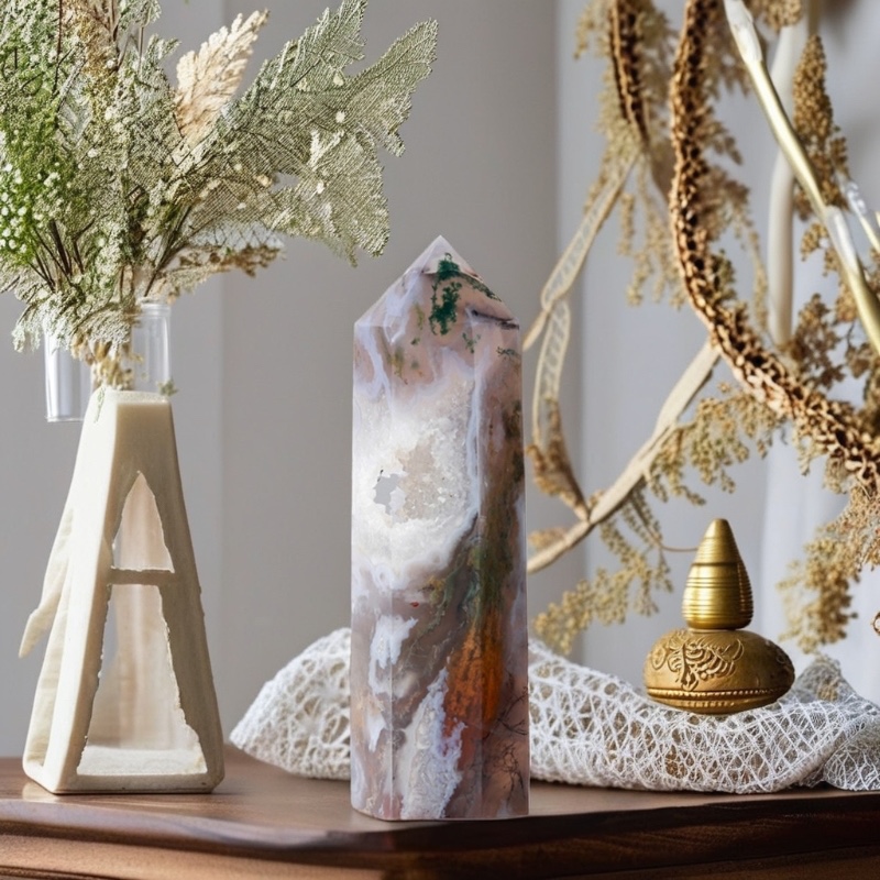 Product Name | Natural Polished Aquatic Agate Carved Tower Point Wand Crystal Quartz Gemstone for Home Decoration Gift Use Inspired by Animals |