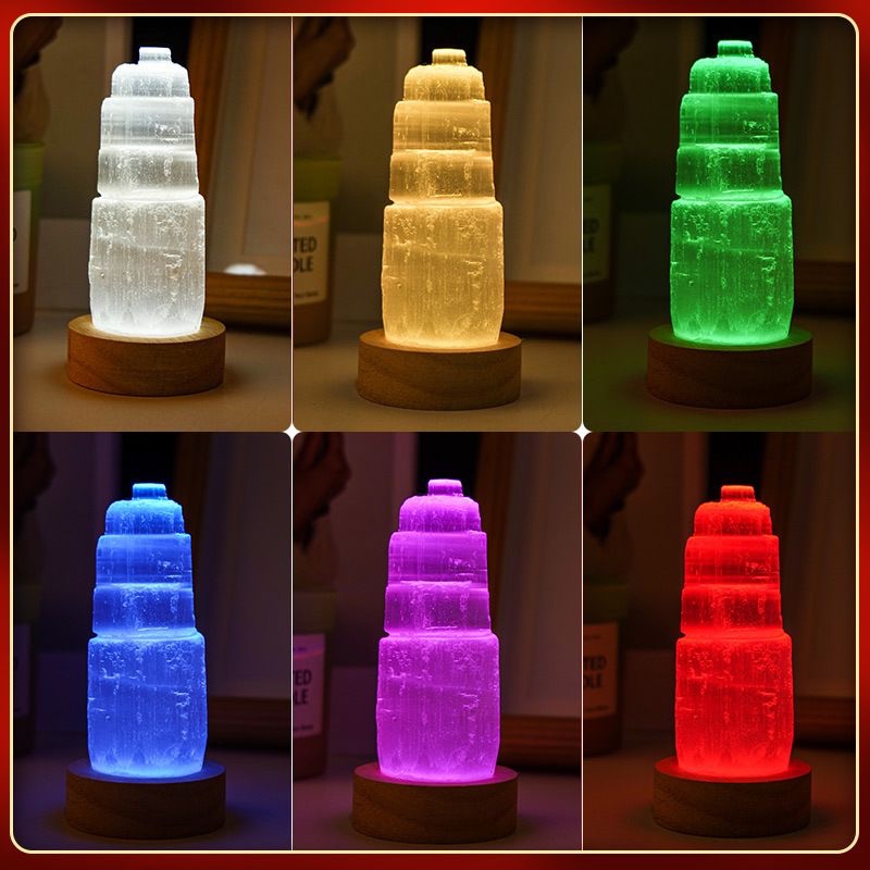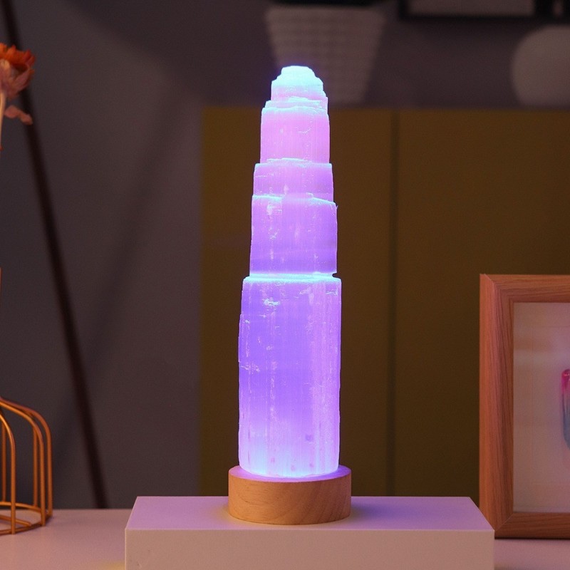 Natural Selenite Crystal Lamp with USB Wooden Base - 副本